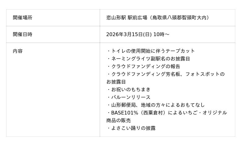 恋山形駅トイレの落成式の詳細
