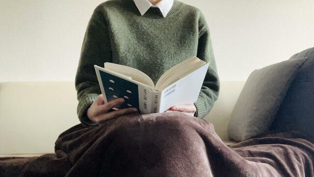 日中にブランケットとして使ってみました。読書や仕事をしているとき、腰回りや足元が寒いなあと感じることが多いんですよね。