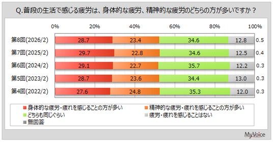 マイボイスコム株式会社(東京都千代田区、代表取締役社長:高井和久)は、8回目となる『疲れ・疲労』に関するインターネット調査を2026年2月1日~7日に実施しました。