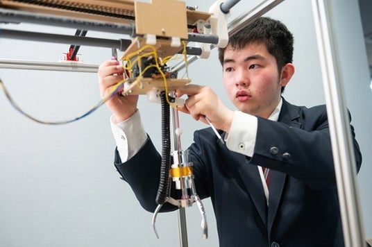 「どこでも誰でも操作できるモノづくりができるエンジニアになりたい」という夢を持って、体が不自由な人も楽しめるネット操作型の小型クレーンゲームを開発。3DCAD設計から3Dプリントや加工まで自ら行い、実機を完成させました。日刊工業新聞社が主催する「九州ロボットコンテスト2024モノづくりフェア杯」で発明のコンセプトやロボット製作の緻密さなどが評価され、見事優勝しました。