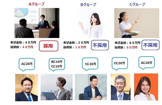 - 最大130万円を勝ち取れ。「マネーの虎」形式で資金配分
