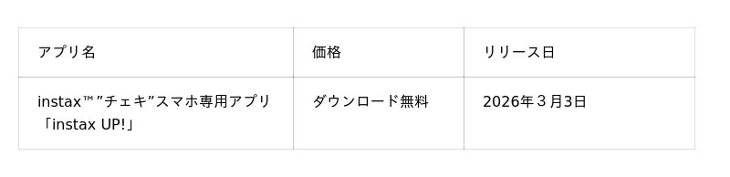 富士フイルム株式会社(本社:東京都港区、代表取締役社長・CEO:後藤 禎一)は、instax(TM)”チェキ”のスマホ専用アプリ(※1)「instax(インスタックス) UP(アップ)!(TM)」のバージョンアップ版を2026年3月3日にリリースします。
