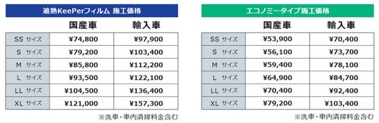※ 車種サイズおよび国産車・輸入車区分により価格が異なります。