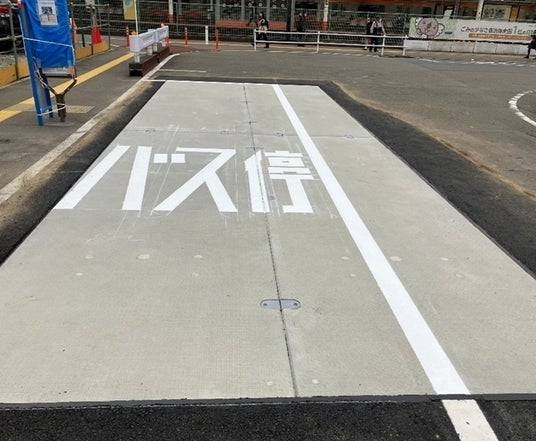 あわせて、CPコンクリートは従来のコンクリート構造物と同等以上の耐久性を担保しつつ、CO2を吸収・固定する性能を有する材料です。そのため、バス停舗装をアスファルト舗装からコンクリート舗装とすることで、舗装構造物としての寿命が約5倍となり、付随して舗装の更新頻度が下がることによってライフサイクルコストの低減が期待されます。