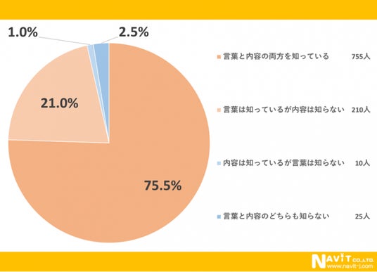 春一番という言葉を聞いて、どの程度イメージが湧きますか?というアンケートです。「言葉と内容の両方を知っている」と回答した人が75.5%で、「言葉は知っているが内容は知らない」と回答した人が、21.0%という結果になりました。