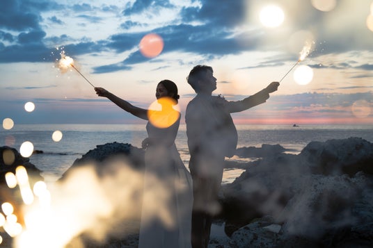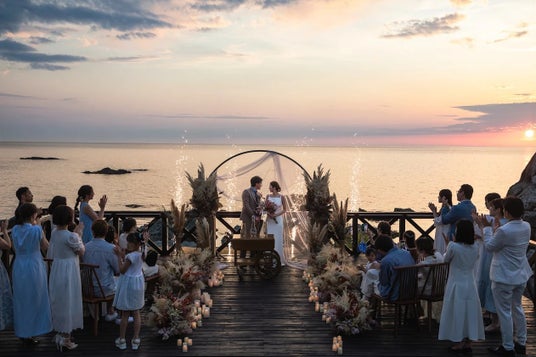 夕陽を背景に行われた結婚式