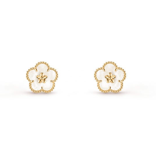 ラッキー スプリング イヤリング、プラムブロッサム(イエローゴールド、ホワイト マザーオブパール)