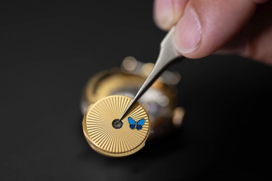 さらに、サファイアガラスからは、放射状のギヨシェ彫刻を施してミニアチュール ペインティングで蝶を描いたローターを覗くことができます。このウォッチは、機械式時計の専門知識とメティエダールの証しとして、ジュネーブにあるヴァン クリーフ&アーペルの時計制作のアトリエですべて組み立てられています。