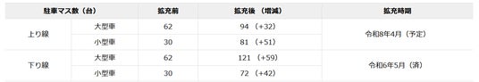 ※上り線拡充後の駐車マス数については、現地調整により変更となる可能性があります。