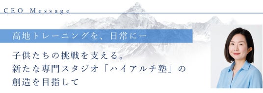 「小学生の子どもたちに特化したセミパーソナル型の低酸素トレーニングスクール『ハイアルチ塾』は、効率よく体力・走力・心肺機能を伸ばせるプログラムとして開発しました。『体が資本』『受験は体力』という言葉が象徴するように、基礎体力は勉強・スポーツ・挑戦のすべての土台になります。短時間で成果を感じられる環境を提供することで、未来を担う子どもたちが自分の可能性を信じ、大きな夢に挑戦できる社会をつくりたいと考えています。