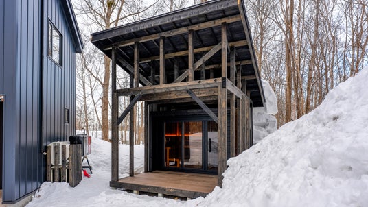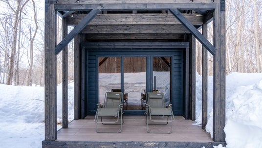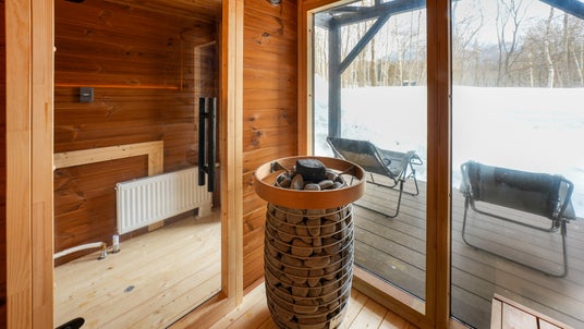 HUUMの電気ストーブが生む熱に包まれながら、雪景色を眺めてのサウナが楽しめます。
