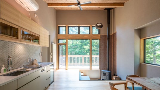 夏は緑が窓を覆い、森に包まれるような静けさに。