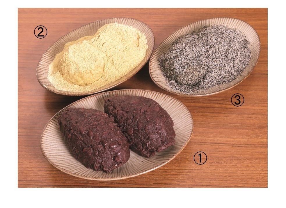 さいちのおはぎ 1パック(2個入) 1.あんこ【各日限定数200】2.きなこ【各日限定数80】3.ごま【各日限定数40】各351円