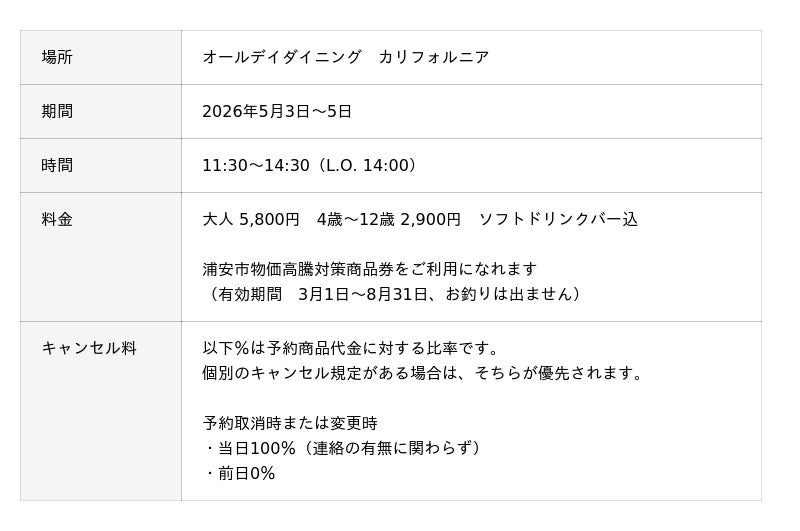 「ゴールデンウィーク・ランチビュッフェ」フェア詳細ページへ