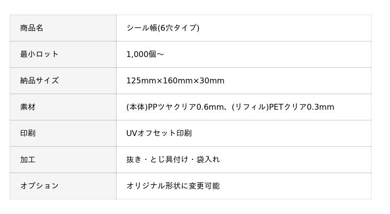 ■シール帳(6穴タイプ)の商品詳細はこちら