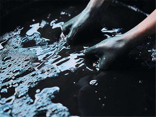 「紺屋のナミホ」では天然の素材を使った伝統的な「天然灰汁発酵建て」という技法で藍染めを行っています。アパレル企業に勤務後、藍染めの魅力に惹かれ、岐阜県郡上市で修行。地元である知多半島の藍染め文化の再建を目指し、2022年に工房をオープンしました。工房では、企業様や個人の方からの染色依頼を受けたり、藍染めを使用した商品企画に取り組みながら、一般のお客様へワークショップや工房見学も積極的に行っています。