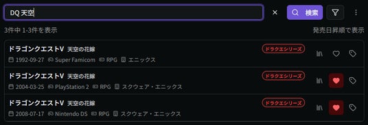 RGGではリリース後も国内ゲームデータの改善を日々進めています。v1.3 より「DQ」や「FF」といった英字略称検索や表示ゲームに関連した主要Wikiを表示できるようになりました