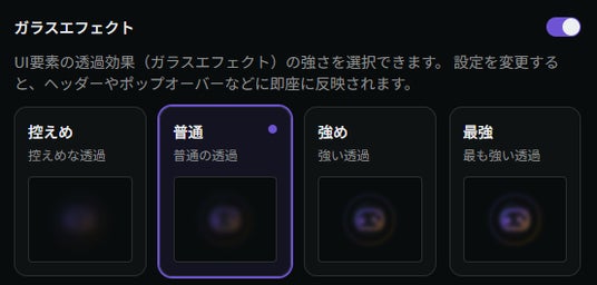 ダイアログ表示時などに背景を透過させるガラスエフェクト機能を追加しました。