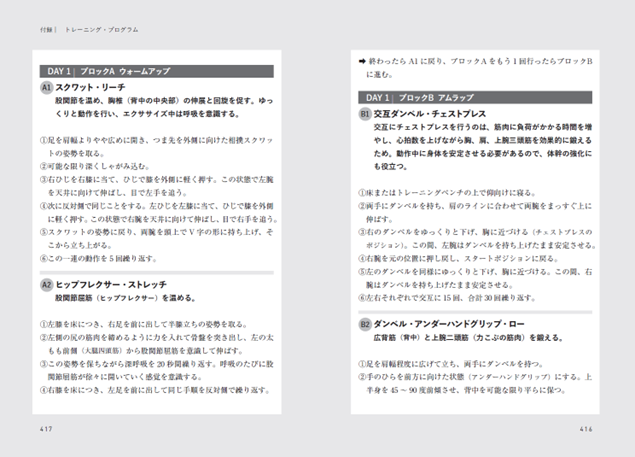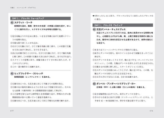 ・本書の付録では、週5日のトレーニング・プログラムや効果的な食事プランについても解説!