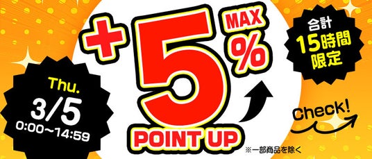 Yahoo!店の自社3店舗において、超PayPay祭期間中の2026年3月3日(火)12:00~3月23日(月)1:59に、時間限定で全品ポイント5倍となるキャンペーン他日替わり399円セールなど、人気商品がおトクにお買い物いただけます!
