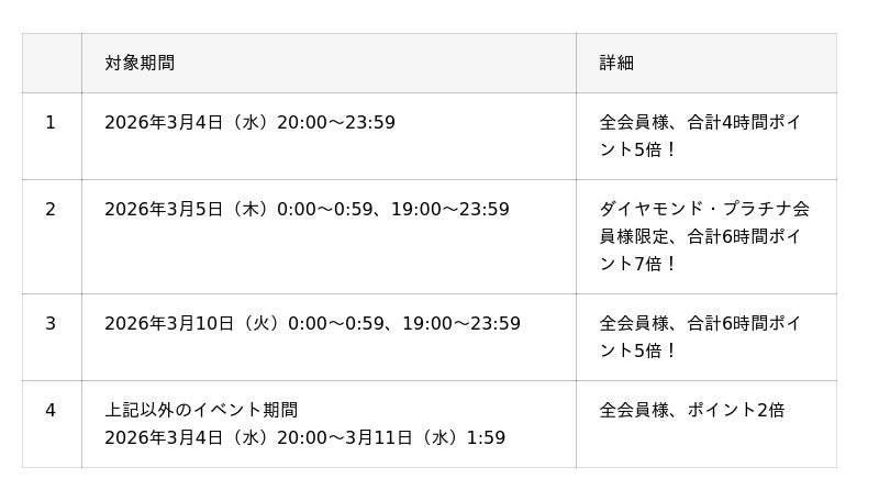 対象時間中にお買い物いただくだけで、エントリー不要・会員のお客様がポイントアップの対象に。