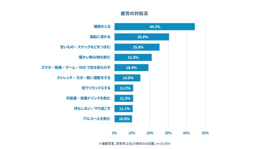 3. 疲労感とその解決策:日本人の8割が疲労を実感、解決策の1位は「睡眠」