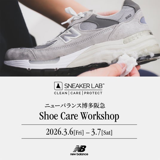 環境配慮型バイオテクノロジーシューケアブランド「SNEAKER LAB(スニーカーラボ)」 は、2026 年 3 月 6 日(金)~3 月 7 日(土)の 2 日間、ニューバランス博多阪急にてシューケアワークショップを開催いたします。