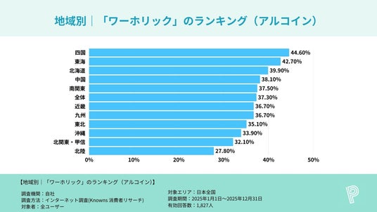 画像投稿や「いいね」をするだけでポイントが貯まる写真共有リワードSNS『ポイシャ(POISHA)』( https://poisha.jp/media/ )を運営する株式会社アドバンは、主要ポイ活アプリ(トリマ/プラリー/おぢぽ/アルコイン/aruku&(アルクト))利用者が抱く「ワーカホリック」イメージの割合を、地方別に比較する調査を実施しました。