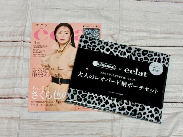 今回ご紹介するのは、『eclat(エクラ)』4月号の付録「LeSportsac×eclat レオパード柄ポーチセット」です。