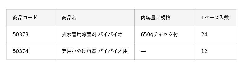 「バイバイオ」は、シンクの排水トラップに潜む微生物やバイオフィルムの除去を目的とした、医療・福祉施設向けの排水管用除菌剤です。