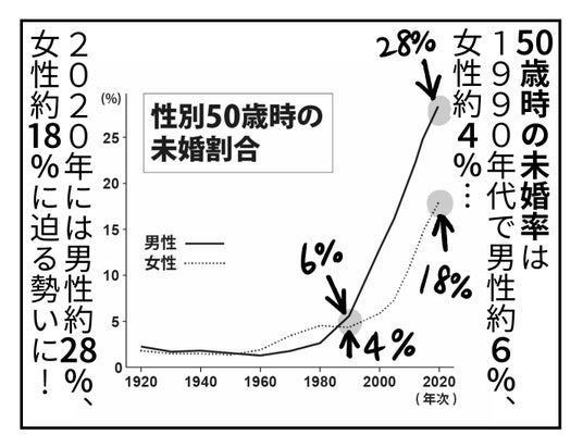 ■現在、 50歳時の未婚率は男性3割、女性2割