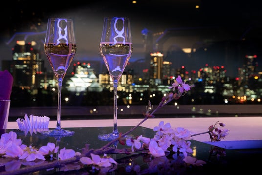 ホテル最上階から望む、ライトアップされた大阪城天守閣のパノラマ夜景とともに、桜にちなんだ限定カクテルや約80種類の豊富なドリンク、さらにお花見気分を盛り上げる限定フードをご用意。春の夜を優雅に彩る“天空のお花見スポット”に是非お越しください。