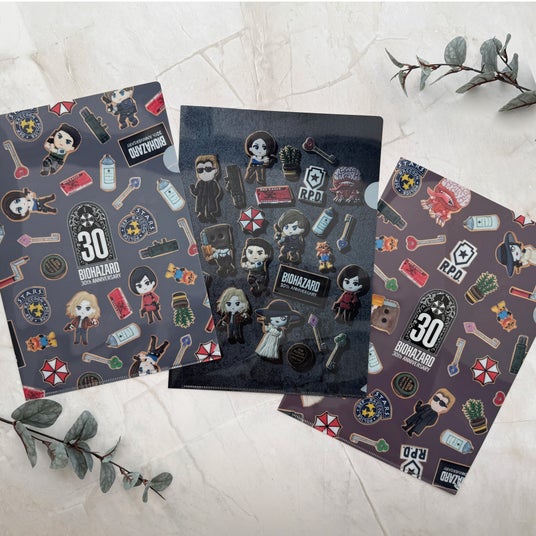 バイオハザードのキャラクターたちが勢ぞろいした「クリアファイル」や「スクエアメモ」、手帳やカレンダーに貼って自分だけのデコレーションができる「ぷっくりシール」はデスクを「バイオハザード」一色に染めてくれます。