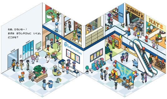 六角形の絵本で、ショッピングモールに没入?