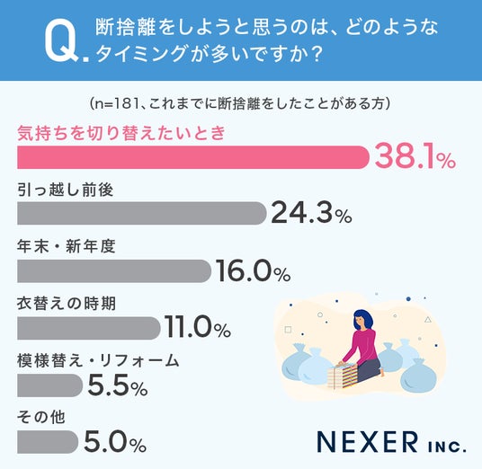 ■38.1%が、断捨離をしようと思うタイミングは「気持ちを切り替えたいとき」と回答