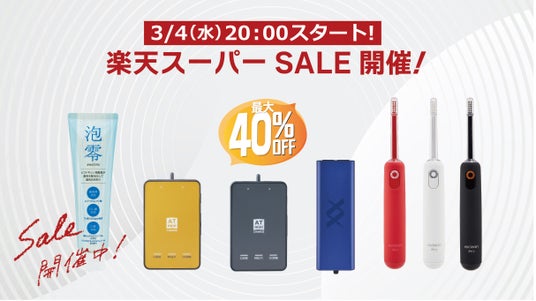 楽天スーパーセール期間中は、トップアスリートが愛用する「ATmini CHARGE」「RUCOE RUN」、超音波と音波のダブルパワー搭載の「reclean24/7(泡零セット)」、泡立たない新感覚歯磨きジェル「泡零〈awazero〉」を通常価格から最大40%OFFでお買い求めいただけます。この機会にぜひご利用ください。