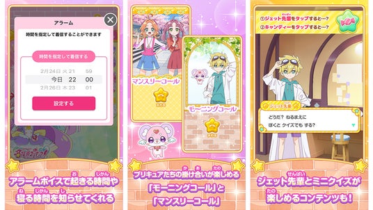 「おはようも、おやすみも、応援してほしい時も!いつだってプリキュアといっしょ」をコンセプトとした、スマートフォン向けのアプリです。