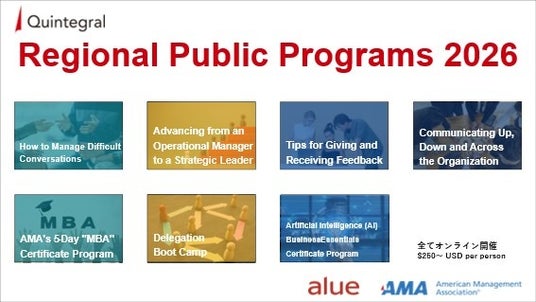 クインテグラル株式会社(本社:東京都千代田区、代表取締役社長:加藤洋平、以下クインテグラル)は、世界最大級のマネジメント教育機関であるAMA(American Management Association)を代表し、アジア地域(シンガポール、マレーシア、フィリピン、タイ、インドネシア、インド、日本)で展開する「Regional Public Programs 2026(アジア地域公開講座)」の全ラインナップを正式にリリースいたしました。