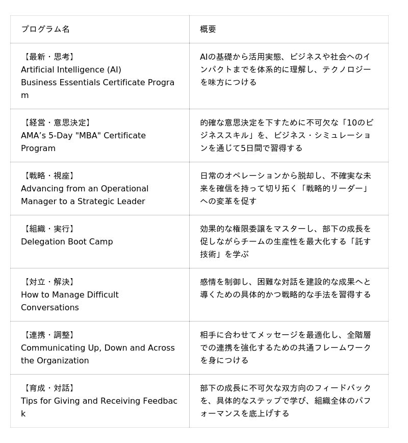 AMA(American Management Association)は、1923年に設立された世界的なマネジメント教育機関です。