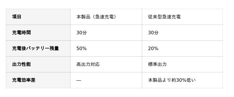※上記実験データはすべて自社40W充電器使用時の測定値です。使用環境や機種により異なる場合があります。