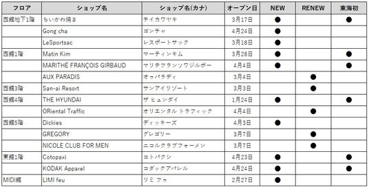 そのほか、アメリカ発のアウトドアギアブランドで、職人の感性で素材を組み合わせ、たった一つのカラーパターンを生み出す「Cotopaxi」(コトパクシ)や、ニューヨーク発のライフスタイルブランドの「LeSportsac」(レスポートサック)、アメリカを代表するワークウェアブランド「Dickies(R)」(ディッキーズ)などが登場し、既存店舗のリニューアルを含めた全15ショップの改装を行います。