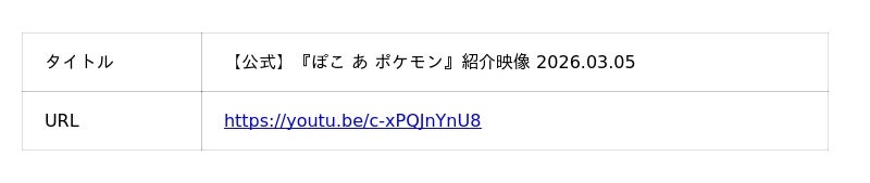※タイトル「ぽこ あ ポケモン」については、「ぽこ」と「あ」と「ポケモン」の間に半角スペースが入ります。