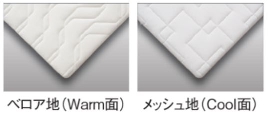 カバーは表裏でWarm面とCool面を使い分けることができ、季節やお好みに合わせて一年中快適に使用できます。Cool面には、エアファイバー(R)の特長である優れた通気性を最大限に引き出すメッシュ生地を採用。さらりとした肌ざわりで、より快適な寝心地へ導きます。また従来品よりも耐久性を向上させました。