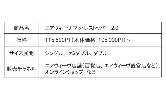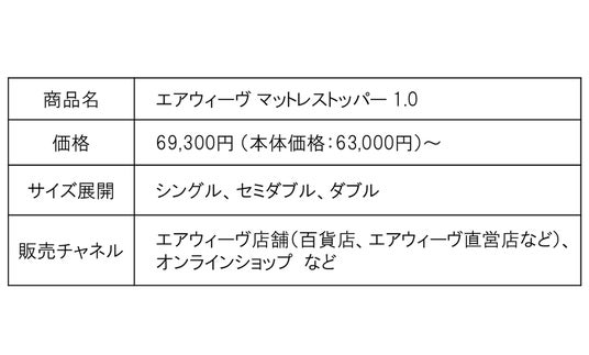 株式会社エアウィーヴ(東京都千代田区、代表取締役会長兼社長:高岡本州、以下「エアウィーヴ」)は、『New airweave』第二弾としてマットレストッパー2種(エアウィーヴ マットレストッパー 1.0、エアウィーヴ マットレストッパー 2.0)を3月5日(木)より発売いたします。