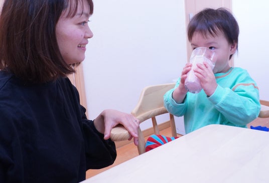 シェイクをゴクゴク飲む2歳児