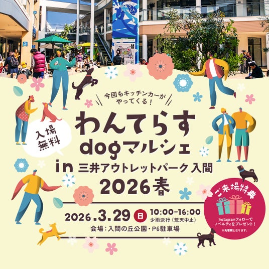 この春、三井アウトレットパーク 横浜ベイサイド内に新設されるドッグラン“BAYSIDE わんわん PARK”の開業を記念したマルシェを開催!
