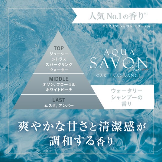 「わたしのための香り習慣。」をコンセプトにした新ブランド『アクア シャボン フォーミー』は、手に取りやすい価格でありながら、香り・品質・デザインには妥協せず、香りを特別なものではなく、日常の中で自然に楽しむものとして提案します。新ブランド第一弾として展開するのが、カーフレグランスシリーズ。車内は、日常の中でも自分だけの時間を過ごしやすいプライベート空間です。本シリーズは、香水のように奥行きのある芳香、車内の気になるニオイを抑える消臭機能(※1)を兼ね備えた、香水生まれの本格派カーフレグランスとなっております。毎日のドライブを、香りで心地よく整える「新しい香り習慣」として展開いたします。