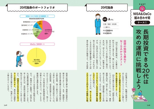さらに、4章「NISA&iDeCo組み合わせ術」では、20代~60代まで世代別に制度の活用術を提案。ライフステージに合わせて、NISAとiDeCoの適切な組み合わせ方を具体的に紹介しているので、投資のスタートから運用まで長期にわたって活用できます。