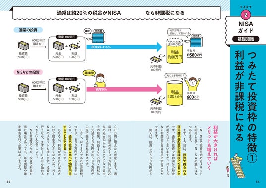 本書は、そうした「投資に興味はあるけど、難しいことは苦手」という人に向けて、イラストや図解を中心に楽しい雰囲気でNISAとiDeCoをやさしく解説する書籍として企画しました。活字を読むのが苦手な人でも、ページをパラパラとめくってイラスト・図解を眺めるだけで制度内容、始め方が理解できる一冊に仕上げています。