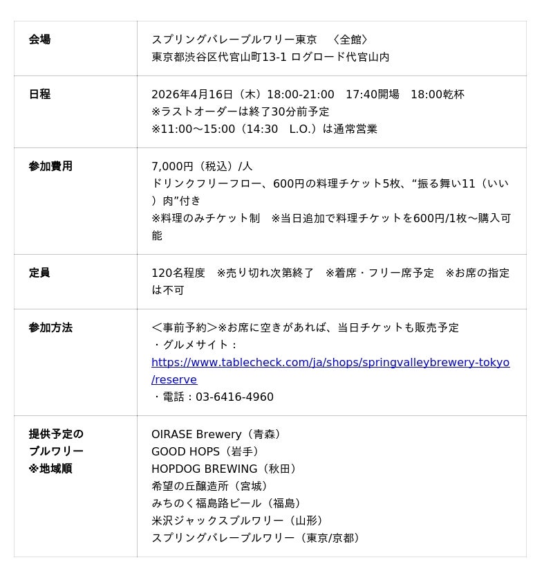 フェア期間の目玉として、クラフトビールと東北産の肉の組み合わせを一挙に堪能できるSVB東京11周年を記念した一夜限りのイベントを2026年4月16日(木)に開催します。